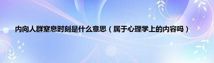 本文,内向人群窒息时刻是什么意思,属于心理学上的内容吗到此就分享完毕,希望对大家有所帮助。