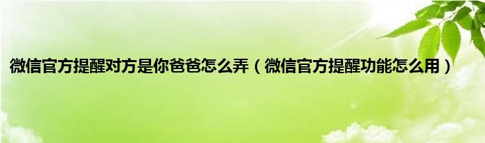 本文,微信官方提醒对方是你爸爸怎么弄,微信官方提醒功能怎么用到此就分享完毕,希望对大家有所帮助。
