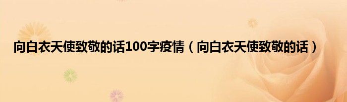本文,向白衣天使致敬的话100字疫情,向白衣天使致敬的话到此就分享完毕,希望对大家有所帮助。