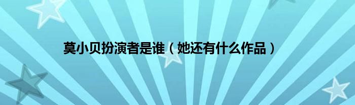 本文,莫小贝扮演者是谁,她还有什么作品到此就分享完毕,希望对大家有所帮助。