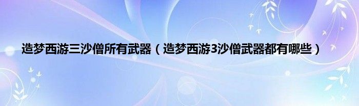 本文,造梦西游三沙僧所有武器,造梦西游3沙僧武器都有哪些到此就分享完毕,希望对大家有所帮助。