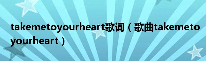 本文,takemetoyourheart歌词,歌曲takemetoyourheart到此就分享完毕,希望对大家有所帮助。