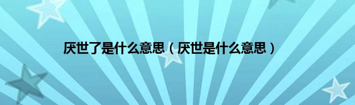 大家好,厌世了是什么意思,厌世是什么意思很多人还不知道,现在让我们一起来看看吧!