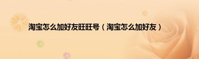 本文,淘宝怎么加好友旺旺号,淘宝怎么加好友到此就分享完毕,希望对大家有所帮助。