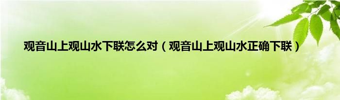 本文,观音山上观山水下联怎么对,观音山上观山水正确下联到此就分享完毕,希望对大家有所帮助。