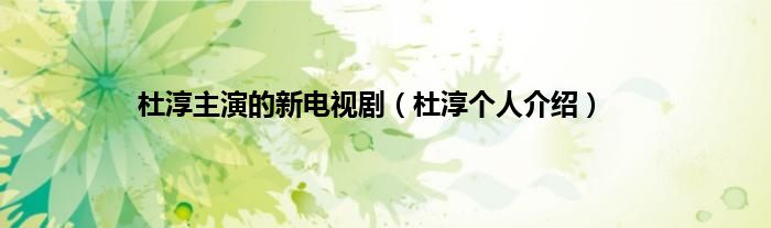 本文,杜淳主演的新电视剧,杜淳个人介绍到此就分享完毕,希望对大家有所帮助。