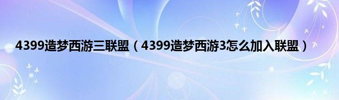 大家好,4399造梦西游三联盟,4399造梦西游3怎么加入联盟很多人还不知道,现在让我们一起来看看吧!