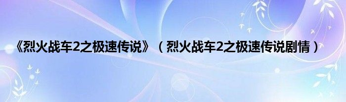 本文,《烈火战车2之极速传说》,烈火战车2之极速传说剧情到此就分享完毕,希望对大家有所帮助。