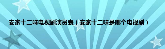 本文,安家十二味电视剧演员表,安家十二味是哪个电视剧到此就分享完毕,希望对大家有所帮助。
