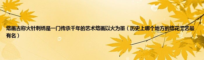 本文,烙画古称火针刺绣是一门传承千年的艺术烙画以火为墨,历史上哪个地方的烙花工艺最有名到此就分享完毕,希望对大家有所帮助。