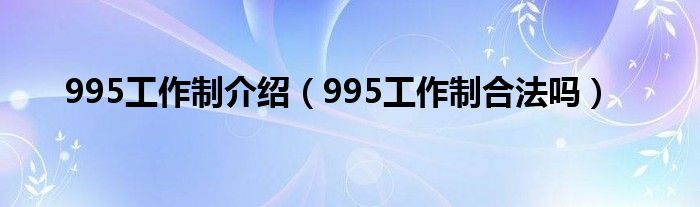 大家好,995工作制介绍,995工作制合法吗很多人还不知道,现在让我们一起来看看吧!