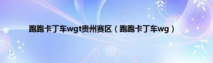 跑跑卡丁车wgt贵州赛区(跑跑卡丁车wg)